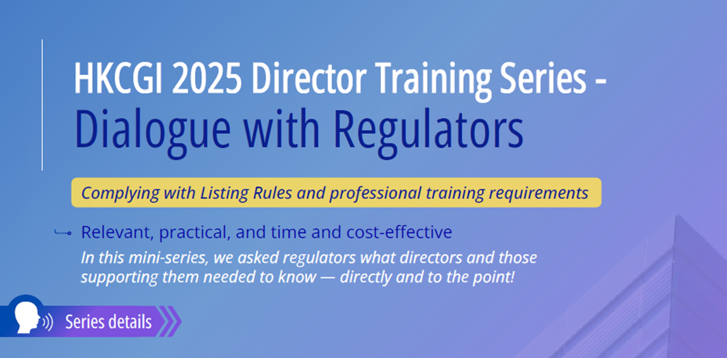 The Hong Kong Chartered Governance Institute (HKCGI) successfully organised the 2025 Director Training Series – Dialogue with Regulators, consisting of three hybrid sessions between July and October 2025: